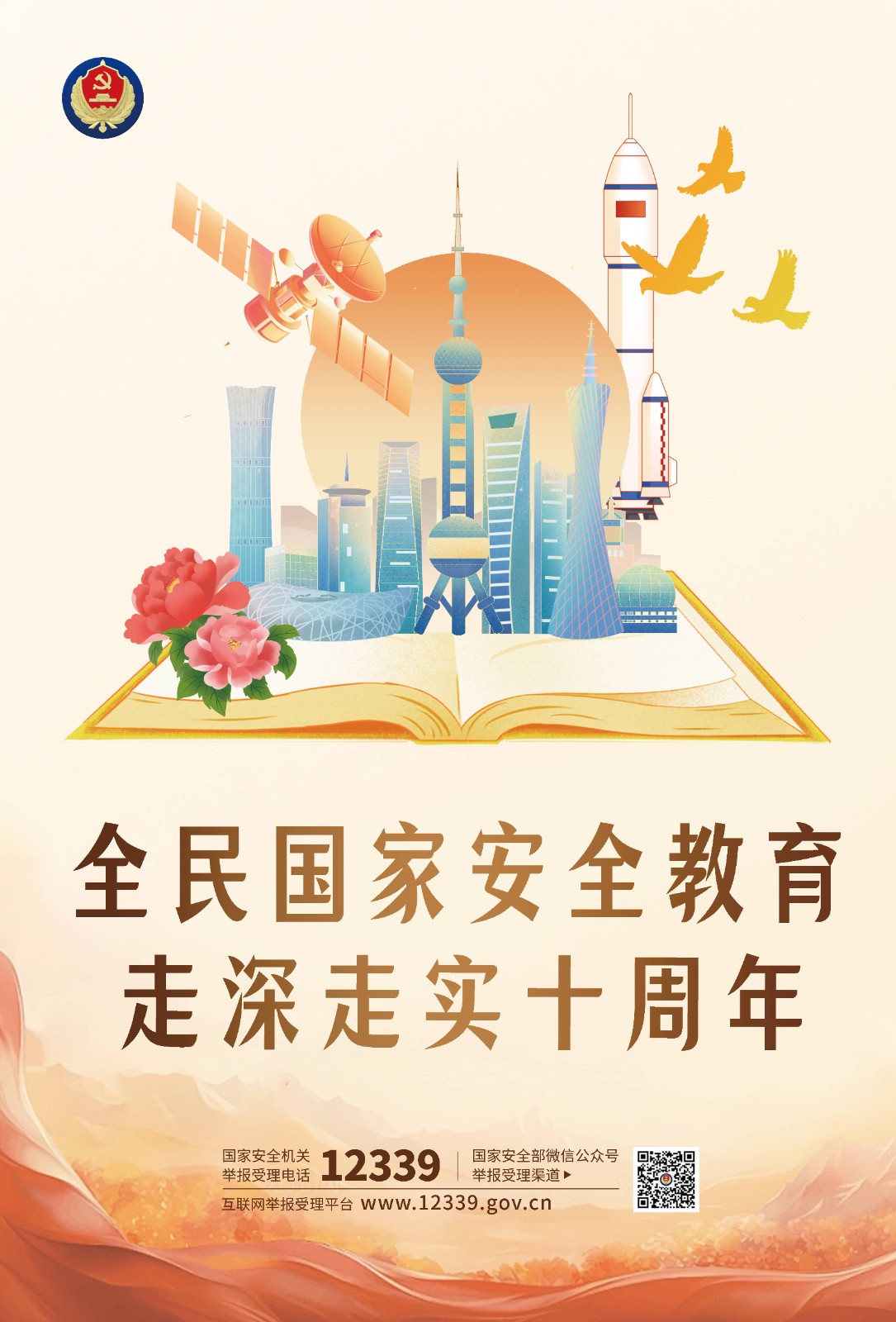 2025年4月15日是第十個全民國家安全教育日,今年的主題是:全民國家安全教育,走深走實十周年。國安宣工作室發(fā)布系列海報,強(qiáng)調(diào)要堅定不移貫徹總體國家安全觀,推進(jìn)國家安全體系和能力現(xiàn)代化,完善國家安全法治體系,提升國家安全工作法治化水平。